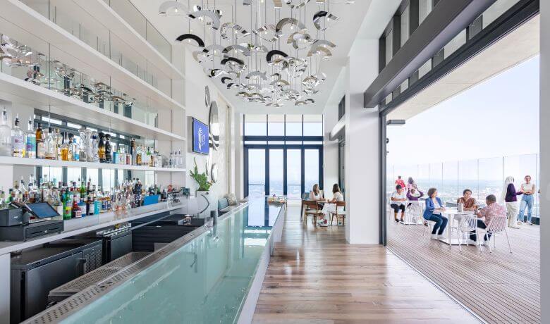 Located atop the highest roof deck in New England, Stratus offers a modern interior with an expansive 360-degree open air observation deck.